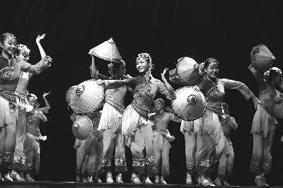 我比较喜欢《围屋·女人》这个作品。它比较干净,一开始的造型营造了围屋这样一个特定的场景,后来通过队形的变化和舞蹈的展开,让我看到一群在田园耕耘的客家女人,她们刻苦耐劳的形象和自立自强的品质得到了很好的诠释。但我仍觉得不满足。首先,这个作品的地域特点还不够浓,还有点大众化,语汇提炼还不够独特,可以再深入挖掘它的个性。《花帽子》的编导用了广东凉帽这个独特的道具,但是没有完全展开,可以再挖掘一下,可能会更有色彩、更有特点。我非常欣赏《鸡公榄》的编导从这样的视野去开掘非物质文化遗产,但是开掘得还不够,人物的内心世界没有通过舞蹈语汇体现出来,显得不够高级。