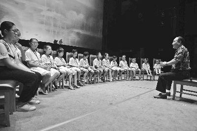 7月24日,武汉汉剧院开展的“汉剧夏令营”在武汉剧院拉开帷幕,活动一直持续到8月2日。120位小营员第一次站在了武汉剧院的舞台上,聆听著名汉剧表演艺术家袁忠玉、程良美讲述汉剧的历史、行当、声腔和四功五法等知识。在后台探秘环节,他们认识了汉剧文武场的乐器,学习辨别汉剧的服装、道具,还走进化装间,在老师的帮助下体验一把戏曲装扮的感觉:穿上厚厚的高底靴,画上油彩,体验着勒头带来的眩晕感,小营员们亲身体验着戏曲演员的苦与乐,留下一串串笑声和感叹。互动现场不仅吸引了本地媒体的镜头,也引来央视有关栏目的全程关注。