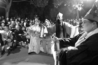 近日,湖南省临武县35个民间艺术团体纷纷走社区、跑乡镇,进基层开展公益演出。图为10月8日晚,该县祥和小调队在武江社区表演临武小调《下洛阳》。陈卫平 摄