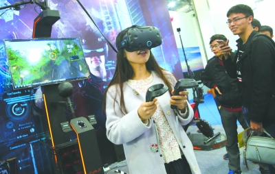 近日,2016上海创意产业博览会在上海世贸商城开幕,智能家居、可穿戴设备、互联网汽车等各类创意设计产品让参观者大开眼界。图为一名参观者在展会上体验VR游戏设备。