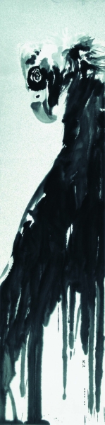 就风格而言,沈沁的作品延续了传统水墨大笔挥写的意趣,她采用见笔不见线的“没骨”手法,在笔墨淋漓中不失造型的严谨与精准,在轻松挥洒中传递出形象的风采神韵,这得益于学院训练给予她的造型功力和笔墨功夫。在《肖像》系列中,鹰的俯仰正侧、尖喙锐目,一个个被描绘得无不神采飞扬。即使从纯粹的技法意义上看,她的鹰系列作品,也堪称水墨中的精品。