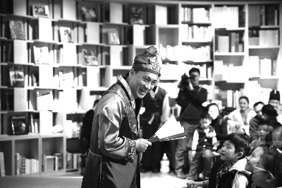 “我娘经常跟我讲,我们每个人都应该爱护我们的国家……”2月26日下午,这句出自儿童剧《傻子温达》的台词“现声”山东青岛方所书店。彼时,店内的书架下、过道间坐满了专注的孩子们,但他们并不是在看书,而是在“听剧”——听身着朝鲜族服装的青岛市话剧院演员们解读儿童剧《傻子温达》的故事来历和读剧本。绘声绘色的读剧、片段表演和互动提问,让现场的孩子兴奋不已。