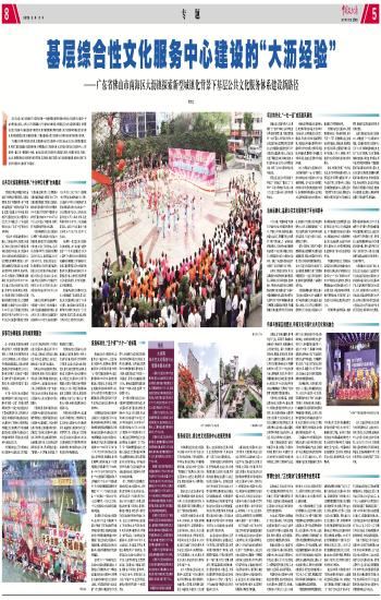 近日,《社区公共文化服务的广东实践与探索——新型城镇化进程中南海大沥综合文化服务中心建设》一书由光明出版社出版。该书以32万字的篇幅,以广东省佛山市南海区大沥镇社区公共文化服务体系建设,特别是综合性文化服务中心建设的实践与探索为例,探讨新型城镇化背景下基层公共文化服务体系建设的方法与路径,具有较高的理论价值、较强的现实意义,对建设基层综合性文化服务中心具有突出的参考价值和示范作用。