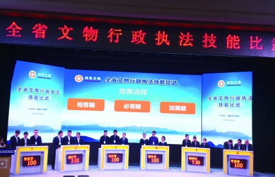 12月1日,由湖南省文物局主办的全省文物行政执法技能比武在湖南省文化馆落下帷幕。此次技能比武通过笔试、抢答、必答、加赛等环节开展文物行政执法法律法规知识竞赛,经过两天的角逐,益阳市代表队从全省14个市州代表队中脱颖而出,获得一等奖,株洲市、张家界市代表队获二等奖,长沙市、郴州市、娄底市代表队获三等奖。(贾 艳 文/图)