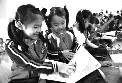 4月2日国际儿童图书日当天,广西南宁市玉兰路小学举行经典诵读、参观图书馆等主题活动,让孩子们在轻松的氛围中享受阅读带来的快乐。 图为南宁市玉兰路小学的孩子们在享受阅读的快乐。