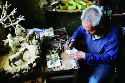 在这个机械雕刻成为主流的时代,梁俊维始终坚持做一个传统工匠,手工雕琢每一件作品。“为何不用机械和电子工具呢?”看到老梁日复一日的辛苦工作,不少人提出了这个建议。一件小型作品,机器制作一天能完成20多个,而手工制作,10天左右才能做出一个。“虽然机械雕刻更快更准,但过于死板,少了灵动,缺乏神韵,更不能体现出匠人匠心。”梁俊维说。
