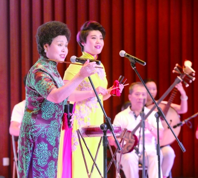 当天演出的曲种安排丰富多彩,梅花大鼓名家籍薇带来的《二泉映月》韵味悠长;单弦名家张蕴华表演的岔曲《避雨亭》《风雨归舟》干脆俏皮;京东大鼓名家倪万珠演唱《白雪红心》声情并茂,焦裕禄心怀人民、为民服务的事迹和精神让观众深受感动。这些鼓曲为天津观众所喜闻乐见,熟悉的腔调让现场观众或拍手、晃头数着板眼,或轻轻跟着哼唱。许多曲艺迷觉得只听一首不过瘾,演员就返场满足观众的要求。
