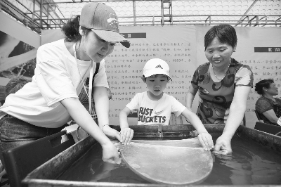 在浙江主场城市活动“‘记忆运河’传统风情展示”的清水丝绵制作技艺展位前,观众在精通技艺的村民指导帮助下体验“清水出丝绵”的神奇;“上梁元宝”“立夏狗”“龙凤呈祥”……在塘栖茧圆展位前,一件件色彩鲜艳的茧圆作品吸引观众不断围拢过来询问各种问题,72岁的塘栖茧圆省级传承人黄芳珠耐心地答疑解惑。