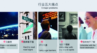 2017年我国出入境旅游高达2.69亿人次,已成为世界第一大出境旅游客源国。在出行过程中,语言沟通障碍成为出境游人群最大的痛点,除了听不懂语言,看不懂图文,还有出外网络流量贵、咨询服务不方便等影响出境游体验的重要因素。