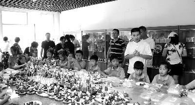 图为博览会举办期间,少年儿童在现场体验传统手工技艺。
