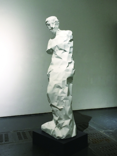 刘水洋1974年出生于山东,2001年毕业于清华大学美术学院。他着眼于从空间、结构以及材料的社会属性等角度进行创作,敏锐地感受并把握当下的时代特征。其《教具》系列作品利用在艺术教育中被经典化的石膏教具进行再创作,通过“模糊经典性”的方式引发对“经典”的再思考。从经典性的丧失转换为带有个性特征的社会符号, 刘水洋的雕塑成了一种更为普遍意义下的社会群体的象征。此类作品包括《维纳斯》《赫尔美斯》《头骨》《大卫》等,它们都与材料在自然属性基础上的社会学属性转换有关。在社会力的作用下,材料的置换成为了装置艺术的一种修辞手法,其背后是带来了另一种新的材料和形式的社会学逻辑关系。新的材料特征和力学结构结合后,形成了一种荒诞、魔幻的超现实感。