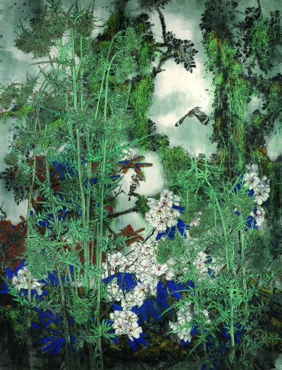 高林滴露(国画) 满江红