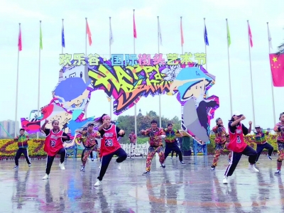 图为国庆期间,在成都欢乐谷举办的国际街头艺术节上,演员们表演街舞。刘凌辰 摄
