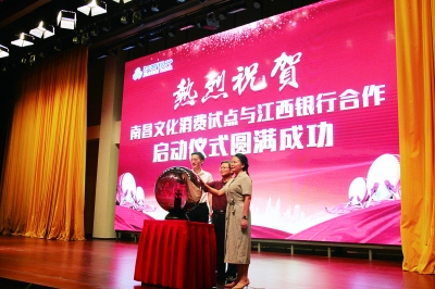 为着力打造集文化消费、文化信息推送、试点数据采集于一体的文化消费信息平台。南昌市文化消费试点工作领导小组办公室与江西银行合作启动仪式于9月21日在南昌举行,江西省文化厅、南昌市政府、江西银行有关负责人参加启动仪式。本次合作采取市财政直补消费者、商家优惠折扣等方式,利用江西银行客户端设立“南昌文化惠”专区,运用江西银行稳定的客户源及平台技术力量,实现文化消费数据的信息化、集成化,以帮助政府准确、及时获得文化消费数据,进而发挥文化消费对经济增长的拉动作用,大力培育市民文化消费理念,引导形成积极健康向上的文化消费导向。市民只要关注微信公众号“南昌文化惠”,就有机会获得积分,通过积分兑换现金券看电影、进剧场、买书籍、参观艺术馆。此外,在朋友圈分享也可获得积分,之后兑换成文化消费券,到选定的书店、演艺场所、文创、旅游景点和主题公园及电影院等文化消费场所使用。