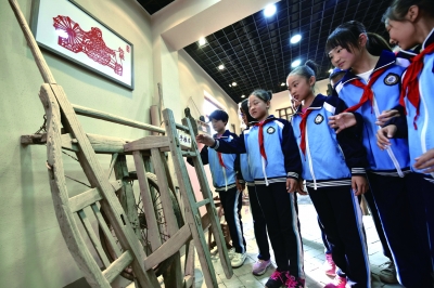 图为孩子们在姜店镇民间民俗艺术馆参观。