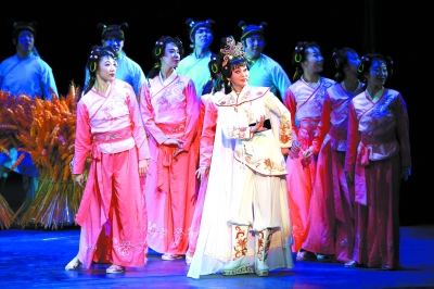 12月4日,作为大运河文化带精品剧目展演演出剧目之一的北京曲剧《翦氏夫人》在北京保利剧院上演。 该剧讲述了元末明初将领翦八士与其妻子吐叶公主的故事,旨在歌颂民族融合和民族团结。 图为演出剧照。