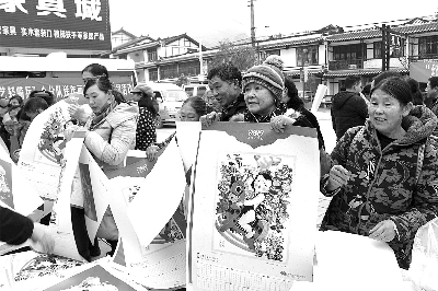 ▶ 近日,湖北省美术院文化志愿者来到湖北恩施龙凤镇龙马村开展荆楚“红色文艺轻骑兵”文化惠民活动,免费向村民发放年画、春联近万套(副),为群众讲解年画和春联的内涵、张贴方法。 邢君成/图 本报驻湖北记者 王永娟/文 |