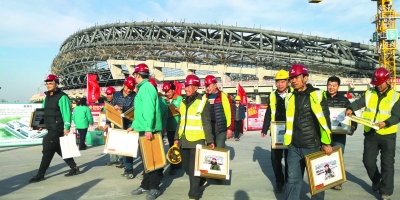 1月22日,由北京市文联、北京摄影家协会主办的“我们的中国梦”——文化进万家活动来到北京城建国家速滑馆工地,为冒着严寒仍在施工的工人兄弟送上专门为其拍摄的艺术人像照片。