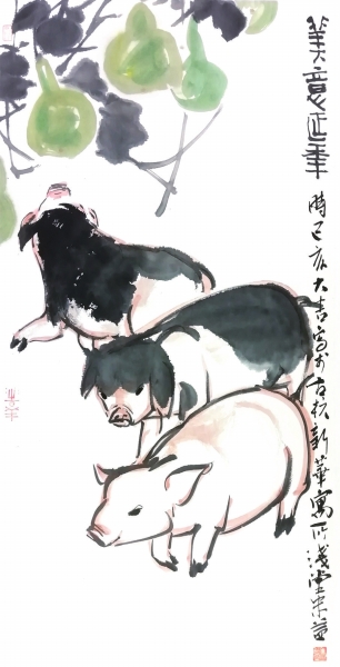 一年春作首,六畜猪为先。在许多人的心目中,猪是吉祥、丰收和财富的象征。农历己亥新年来临之际,很多艺术家也以猪为主题创作了一批绘画作品,或写意勾勒,或细致刻画,表现形式不同却皆带着美好的寓意与祝福。本版特选登部分作品,以飨读者。