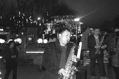山西省清徐县组织开展了春节、元宵节系列活动,包括正月看大戏、公共文化惠民演出、民间民俗非遗文化展示等。图为音乐爱好者在清徐县街头演奏萨克斯。