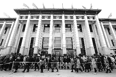 大年初一,中国国家博物馆送百“福”活动为首批参观者送上新春祝福。观众不仅收到了国博书画家的“福”字,“亥岁祯祥——2019新年迎春书画展”“伟大的变革——庆祝改革开放40周年大型展览”等重磅展览更使观者感受到了历史变迁,传承家国情怀。据悉,春节期间,国博日均观众超6万人次,且多以家庭为单位,既有一家三口,又有祖孙三代。图为大年