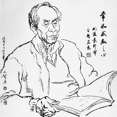 袁老翻阅我赠送的书,看得很专注,我就拿起毛笔为袁老画像。袁老的夫人杨贺松大姐也是北大教授,她观看我作画,热情为我倒茶。画完后,杨大姐称赞说:“画得很好,真像!”我将画作请袁老过目题字,袁老题道:表里俱澄澈,心迹喜双清。虽不能至,心向往之。戊戌年仲冬袁行霈题。袁老谦虚地说:“这两句诗是两首诗句的连句,是我一生向往并努力去做的,但我做得还很不够。”双清就是品格和行为都十分高洁,袁老表里一致、光明正大令人景仰。孟子曰:吾善养吾浩然之气。在中华文化的历史上,传承着这股“至大至刚”“塞于天地之间”的正气,成为传统文化的精华。古代有诸多大家,人品、艺品俱佳,其中被誉为“诗仙”和“诗圣”的李白和杜甫,千百年来,他们的诗词名篇及品格为人们传颂。一九八五年我画《正气篇人物》时还专门创作了李白和杜甫的形象。袁老对李白和杜甫有深入的研究和解读,称李白“飘逸者,如春烟、如秋岚,如天外之鹏飞,如海上之浪翻,无拘无束,舒卷自如,才情豪迈,无迹可求”。称杜甫“沉郁者,如神潭,如老松,如涧底之虎啸,如峡中之雷鸣,地负海涵,博大雄深,进退伸缩,皆合法度”。袁老认为这两种风格“都属于美之上品,不可加以轩轾抑扬”。袁老以古诗为人生坐标,也铸就了他十分儒雅的风采。袁老追求的是内心的修养和生命体验,这对于培养学生也至关重要。在另一幅画像上,袁老题道:常怀感激之心,毗陵袁行霈自题画像。去年是改革开放四十周年,今年是新中国成立七十周年,中国从站起来、富起来到强起来,在亿万人民努力实现中国梦的伟大时代,袁老这样的心意是我们共同的。毗陵是袁老祖籍地,现在是江苏省常州市武进区。题字特意写上“毗陵袁行霈自题画像”,这也体现了袁老的家国情怀。袁老赠予我他撰写的书《陶渊明集笺注》,还有《中华文化画报》,里面刊有他的学生王能宪博士的文章,介绍袁老“时光里的诗意人生”“吾师如诗”。袁老不仅桃李遍天下而且著作等身,连大名鼎鼎的金庸在封笔后,还专程到北大拜袁老为师。