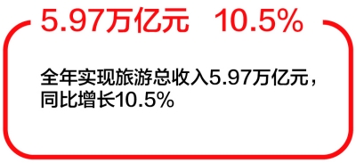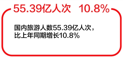 根据国内旅游抽样调查结果,国内旅游人数55.39亿人次,比上年同期增长10.8%。其中,城镇居民41.19亿人次,增长12.0%;农村居民14.20亿人次,增长7.3%。国内旅游收入5.13万亿元,比上年同期增长12.3%。其中,城镇居民花费4.26万亿元,增长13.1%;农村居民花费0.87万亿元,增长8.8%。