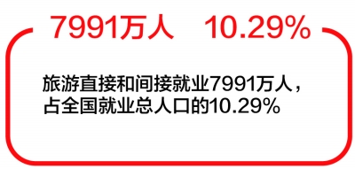数据显示,2018年,国内旅游人数55.39亿人次,比上年同期增长10.8%;入出境旅游总人数2.91亿人次,同比增长7.8%;全年实现旅游总收入5.97万亿元,同比增长10.5%。初步测算,全年全国旅游业对GDP的综合贡献为9.94万亿元,占GDP总量的11.04%。旅游直接就业2826万人,旅游直接和间接就业7991万人,占全国就业总人口的10.29%。