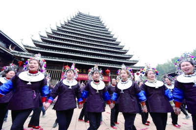 今年春节期间,广西壮族自治区三江侗族自治县林溪镇平岩村岩寨屯举办了“姑巴回门”活动,近200名外嫁女子齐回娘家。在三江侗族习俗中,出嫁姑娘回门是一件盛事。活动中,村里“娘家人”和出嫁的姑娘纷纷穿上民族盛装,展开多耶踩堂、百家宴等精彩民俗活动,吸引众多游客前往观赏体验,感受千年侗寨的浓浓年味。龚普康/图 本报驻广西记者 郭凯倩/文