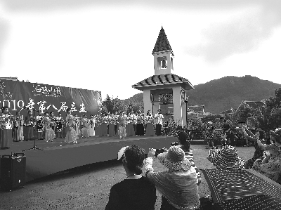 从大年初一到初三,来自各地的文化交流与交融发展到高潮。在由社区组织的“第八届庄主春节联欢会”上,不同于北方以白雪红灯笼为主题的节日气氛,各类文艺节目在火热的阳光下争奇斗艳。下至4岁的娃娃,上到80岁的老人;从技法不成熟的初学者、业余爱好者,到技艺精湛的文艺工作者;从《唱支山歌给党听》等红色歌曲合唱,到京剧、地方剧种、芭蕾舞、肚皮舞、民族舞蹈、器乐演奏、相声等,门类齐全、各具特色。这次春节联欢会持续了3天,全部由社区居民演出,让这座平日里静谧的溪谷花园充满了欢快热闹的年味。