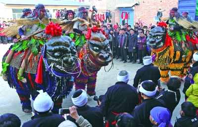 2月11日,山西省运城市稷山县清河镇北辛庄村举办“高跷走兽”闹新春民间社火表演活动,众多村民前来观看。“高跷走兽”是当地特色民间表演艺术,表演时两人足踩高跷同演骑兽状,伴随着鼓乐声行进,演绎神话传说,表达当地百姓祈盼风调雨顺、五谷丰登的美好愿望。