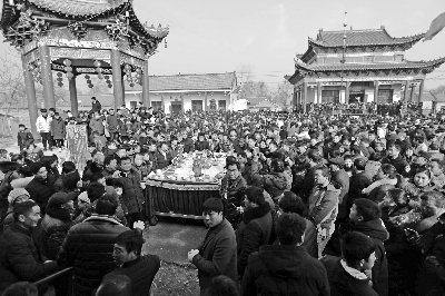 2月11日(农历正月初七),山东省菏泽市曹县桃源集镇举行花供会。桃源集镇群众运用传统工艺技巧,将面团、瓜果等雕成各种造型的作品,进行展示、交流。桃源花供是当地人为祈求风调雨顺、五谷丰登、人丁兴旺的祭祀供奉习俗,现在逐渐发展成为一种民间传统雕塑工艺品展览盛会。