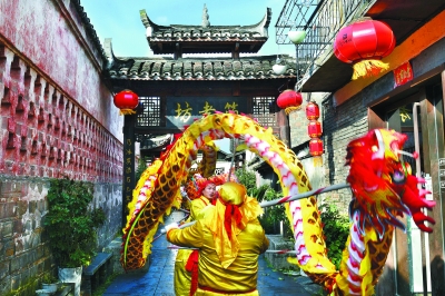 春节前夕,益阳市文化志愿服务队刚到贫困村——安化槎溪村,便在村部广场忙碌起来,搭台唱戏、挥洒笔墨,好不热闹,据统计,活动当天共赠送图书、年历等400余册,现场书写春联200余副,剪制福字窗花200余张。2月5日,张家界市武陵源吴家峪游客中心广场上两条长龙在龙珠的引领下,时而上下翻飞,时而腾转挪移,吸引了大批游客与当地群众驻足观看。当天,2019武陵源区“我们的中国梦 文化进万家”系列活动在此举行,现场气氛热烈。