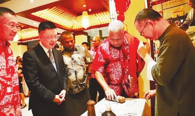 2月1日,中国驻斐济大使馆在斐济苏瓦市政礼堂举行2019年春节招待会,中国四川省歌舞剧院艺术团为观众奉献了一台精彩纷呈的文艺演出,“四川故事”非遗活态展同时举办。斐济总理姆拜尼马拉马等政要观看演出,并参观了非遗活态展的每一个展位,体验剪纸、年画等非遗项目。姆拜尼马拉马代表斐济政府和人民向中国人民和在斐华侨华人致以猪年新春祝福,积极评价在斐华侨华人为斐济经济社会发展、丰富斐济民族和文化多样性作出的重要贡献,希望华侨华人继续为斐济各方面的发展贡献力量。