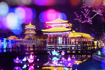 “昼赏百花夜观灯”。在广东省广州市,越秀公园花灯会将灯展与花卉展相结合,以灯构花、以花展灯、以灯入景,通过生动的造型和不同的表现手法全力展示大美中国和岭南文化特色,并用环保的设计理念、巧夺天工的设计、精湛绝伦的工艺、缤纷炫目的光彩,带给游客视觉享受。