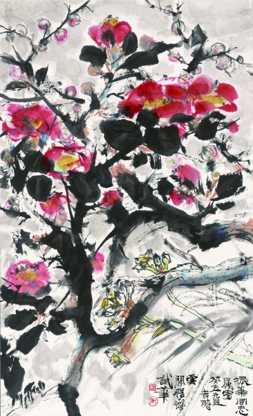 据程十发艺术馆馆长毛国伦介绍,吴昌硕之后的海上画坛,一代名家如王震、王个簃、诸乐三、吴茀之、陈师曾、朱屺瞻、赵云壑等,皆为吴之门人,吴昌硕的绘画还启发了齐白石和潘天寿。而程十发于19岁进入刘海粟创办的上海美术专科学校,成了吴昌硕入室弟子王个簃的学生,可以说,程十发也是吴昌硕的再传弟子。但是,程十发自上海美专求学开始,并未以吴派绘画风格为个人的终生追求,而是在努力学古访师中,寻找自己的绘画语言与风格定位。从绘画传承发展角度来看,反向继承也是一种继承,就如清初的“四王”“四僧”对董其昌松江画派画学思想的传承一样。因此,反向的继承性也是此次展览的学术定位之一。