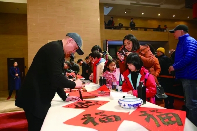 活动结束之际,接福纳祥的观众们纷纷与艺术家们一起合影留念。随后,观众们带着饱含中国美术馆和艺术家们深情祝福、散发着墨香的“福”字,带着节日的喜悦和满足,走向展示众多美好艺术作品的展厅。还有的观众拿着“福”字,在明媚的阳光下,在中国美术馆前的台阶上留影,让这节日的欢乐喜庆留在自己的相机里、手机中和记忆深处。