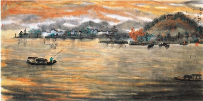 就绘画而言,他的山水画出现了两种追求:一是回归明清以来的传统,打造个人笔墨图式,讴歌人与自然的和谐,以“变古为今”的面貌诠释中国艺术的写意精神,比如《江南水乡》系列;二是他的《水墨光晕》系列作品,则是参照西方现代艺术,探索以往未曾表现过的新形式、新语言、新境界,同时强化山水画的视觉观念,以崭新的面目阐释现代感。