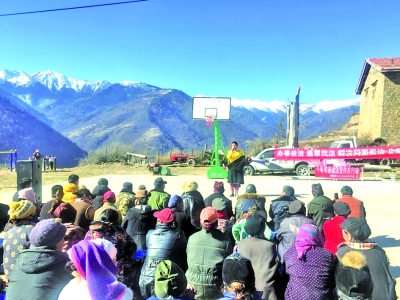 春节前夕,黑水县送文化下乡活动如火如荼地进行。为推进精准扶贫,大多数活动安排走进一些偏远而贫穷的村落。县文体广新局的卡斯达温艺术团日前来到海拔约3000米高的扎窝乡俄窝村,展开了一场云端上的文艺演出——以篮球场为舞台,以蓝天、雪山为背景,以黑水民间歌舞和生产生活为主要演出内容,老百姓也是坐在几根木头上观看演出。演出最后在演员和观众手拉手共跳黑水锅庄舞的欢乐气氛中落下帷幕。一场精彩的歌舞盛宴对于文化生活匮乏的当地群众而言无疑是一种精神享受。