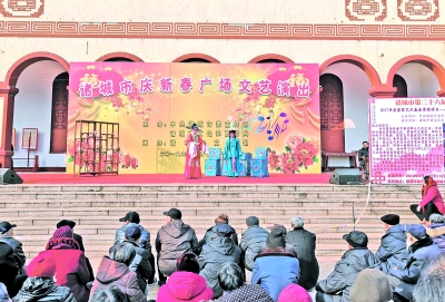 正月初七,诸城市中心广场正在上演茂腔《罗衫记》,市民从四面八方拥至,将舞台围得水泄不通。每年春节期间,我馆都要举办庆新春广场文艺演出,到现在已经连续举办了26年,而茂腔是每年最经典的保留节目。诸城是茂腔的故乡,过年看茂腔已成为诸城人的一种传统和习惯。只要过了正月初六,市民都知道我们馆会在广场上演茂腔。有些戏迷会从乡下赶来,有些观众会很早就来占座位,也有些“资深”戏迷渐渐和我们混成了老相识。为了让大家看好戏,同事们会提前一天一起出动搭台子,拉幕布、铺红毯、调音响……多年的搭台经验让大家变得非常默契,每个人应该干什么,不用言说。在我们心中,这些每年都会做的工作更像是一种新春开工仪式。