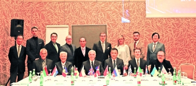 CBDF维也纳国际论坛现场(上图:大合影;中图:左一主持人为中国国际标准舞总会副主席兼秘书长王永刚;左二主讲人为世界舞蹈理事会荣誉主席、德国职业舞蹈协会主席卡尔·布劳耶;左三主讲人为中国舞蹈家协会分党组书记、副主席、秘书长,中国国际标准舞总会主席罗斌;左四主讲人为世界舞蹈理事会荣誉副主席、俄罗斯舞蹈协会主席斯坦尼斯拉夫 |
