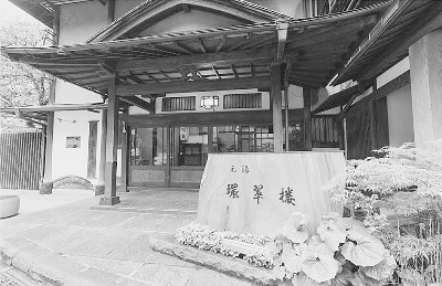 我不是说人家不好,相反,话应当倒过来说,这家百年老店环翠楼的服务是太好了,什么活儿都有细致与严格的规程。下午进店的时候,殷勤的服务员就特意把我领到底楼的一间阅览室,指给我看墙上的孙中山题词,又领到四楼,指给我看康有为的题词,都是真迹,说康有为与孙中山先后都住过这里。这家酒店有直接引进屋内的于七百年前发现的一道温泉,古色古香的楼边绕有哗哗作响的山溪,这些来自中国的名人住得开心了所以才愿提笔给酒店主人题词。