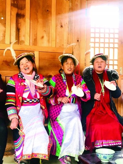 2.白马人在自己的村寨唱起了幸福的歌谣。