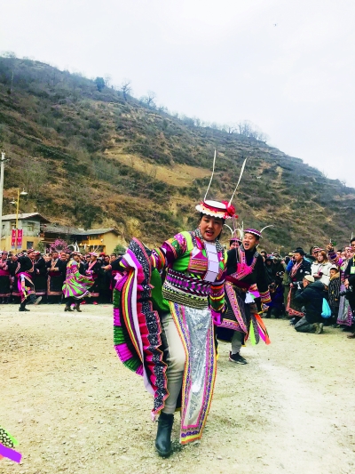 “拉嘎勒,莎格勒,山寨的春天已经到来……”正月十五,在甘肃陇南文县铁楼乡草河坝村,当地的白马人身着节日盛装,头戴插有白翎羽的“沙嘎帽”,在熊熊燃烧的篝火边,跳着热闹欢腾的火圈舞,与游客一起品味醇香四溢的咂杆酒,也分享了民俗文化旅游给他们带来的美好生活。