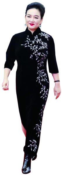 这份诗意在刘思彤的旗袍作品中都一一呈现。阳光透过会所落地玻璃,一件名为“虞美人”的旗袍绫纱轻盈,前襟、水袖,点缀着满绣芍药,淡雅而生动。