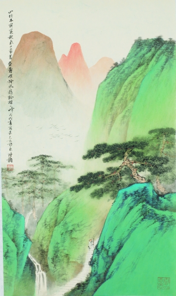 然而,在当下凡事追求速成的社会状态下,对于其中之内涵要义已乏人问津了,更遑论推敲“师古人”“师造化”与“得心源”之画学三昧并探究其奥义及其中实践法则了。因此,若非沉潜发愿、奋力耕耘的有识之士,怎能窥得其中堂奥。然而,这正是陈翔几十年来于山水画创作一路摸索行经而来的路:由“师古人”“师造化”,进而达到窥得中国艺术精神与创作规律的“中得心源”。从而也形成了其以“北宗”的水墨苍劲写“南宗”的神思超逸,用有力而飞扬的笔墨、雅致而浓郁的小青绿色彩,借洗练而生动的图式,构筑或超越或奇雄的充满生机的意境,而表达心灵与自然的契合,不期然而然地营造出悠远深微之境界及透露出澄怀观道的旨趣,把对生命与自然之体悟带入山水画的现代语境之中。