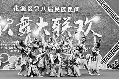 据介绍,花溪区自2012年开始,每年正月十三都会举办民族民间歌舞大联欢,至今已经连续举办八届,成为花溪区老百姓喜闻乐见的品牌文化活动。图为联欢活动演出现场。吕静华/图 董金黄 吕静华/文