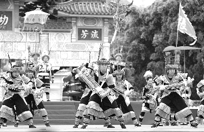 图为艺术节上展示的民间舞蹈《耍歌堂 长鼓舞》。