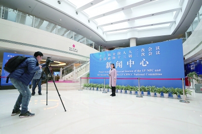 ▼ 全国两会开幕在即,设在北京梅地亚中心的两会新闻中心2月27日正式启用。两会新闻中心设有境内记者组、港澳台记者组和外国记者组,为保证中外记者在全国两会期间顺利完成采访、编发和传输稿件的任务,新闻中心设有通信网络服务室,并首次提供5G网络全覆盖。本报记者 卢 旭 摄