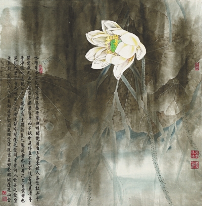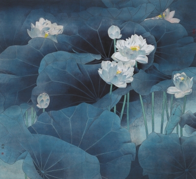 下图:《荷·映月》62cm×43cm纸本设色2015年